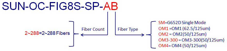 | Recuento de fibra | 2~ 24 | 26 ~ 60 | 62 ~ 72 | 74 ~ 96 | 98 ~ 144 | 288 | |