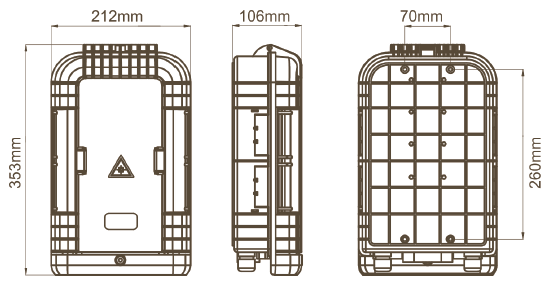| SUN-ODN-JZ 24 N- F - 192 GW | Caja de distribución de fibra óptica | Gris ; Adecuado para 1 pieza de 1x16 o 2 piezas de divisor PLC tipo sin bloque 1x8 ;8 bandejas de empalme de 12/24 núcleos; con panel adaptador para un máximo de 24 piezas de SC o LC dúplex (tipo SC) ;3 puertos de entrada de cable (puerto intermedio incluido) ; 24 piezasPuertos de salida ; Adaptadores y divisor PLC NO incluidos; Material: PC+ABS; Dimensiones: 353(L)x212(W)x106(H) mm ; Accesorios de montaje en pared incluidos |
