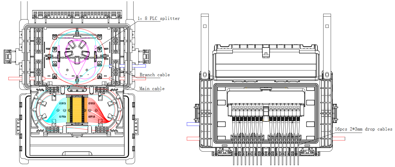 Outdoor, 1*1:16 splitters(blockless or insert type), Max adaptors: 16/24, SC, DLC adaptor