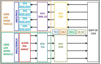 | SUN-QSFP28-100G-LR4 | Transceptor óptico | Q SFP 28 , 100 Gbps , 1310 nm ; SM, fibra dual, distancia máxima de transmisión: 10 km; interfaz LC |